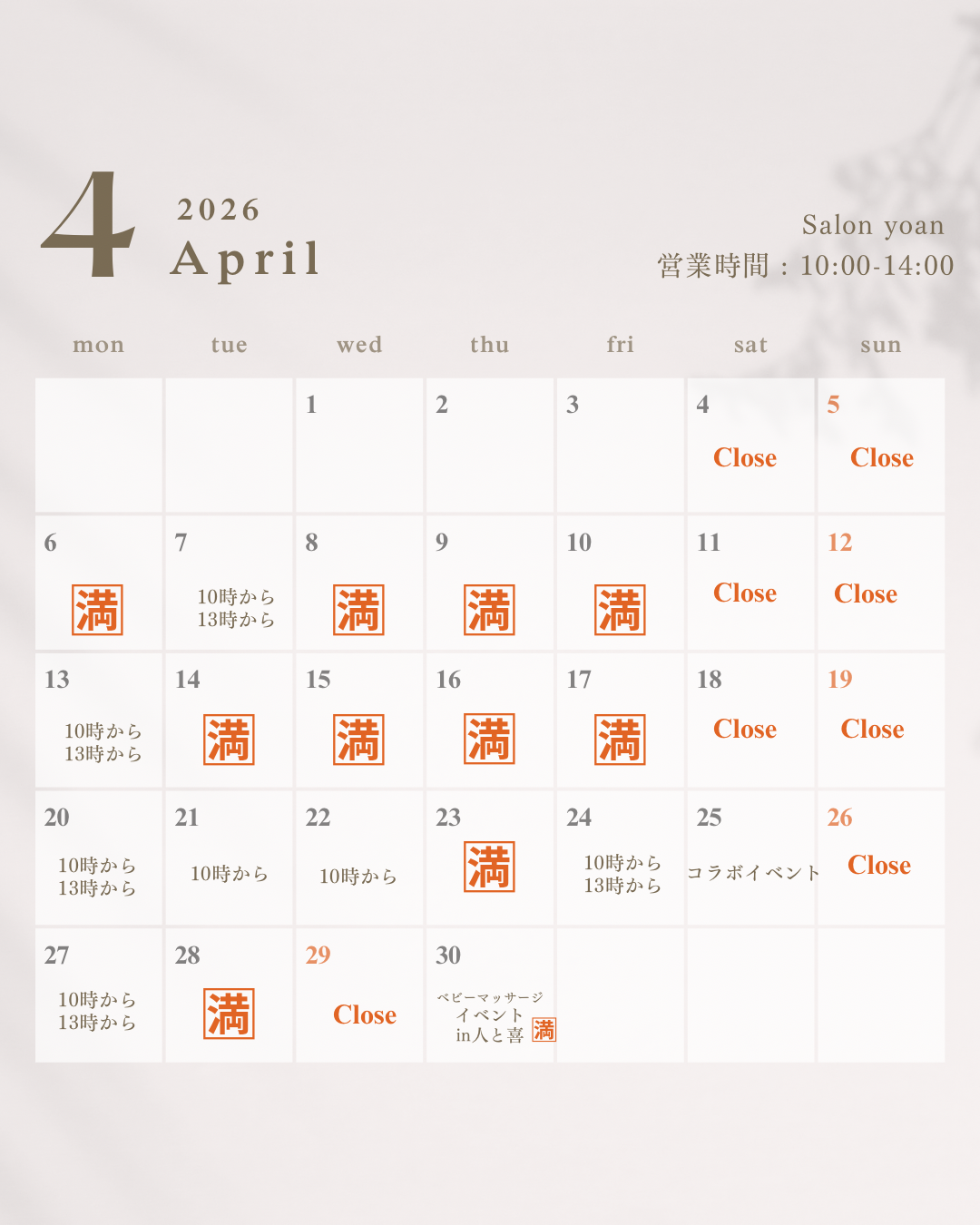 宮崎市のママ特化型サロン「Salon yoan」です。