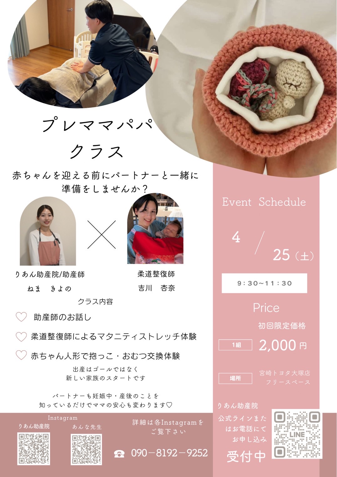 4月25日は助産師×柔道整復師によるプレパパプレママ講座!!